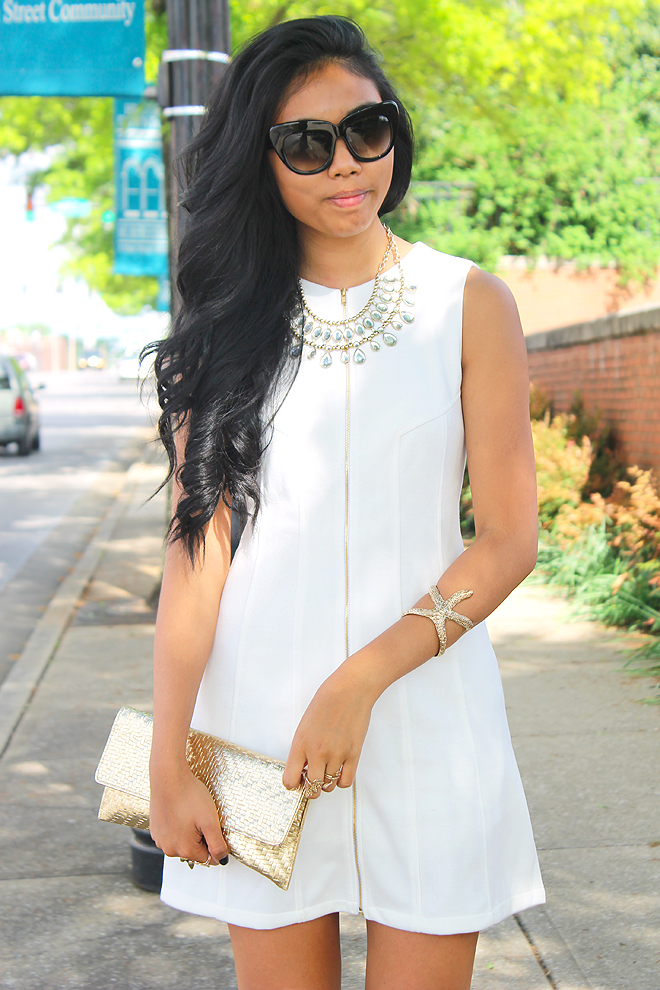 Lately, I've just felt like wearing dresses or skirts. Mainly because they are easy to style. All you have to do is pick the right accessories and shoes and you are good to go! Today, I am wearing this one long zippered dress from