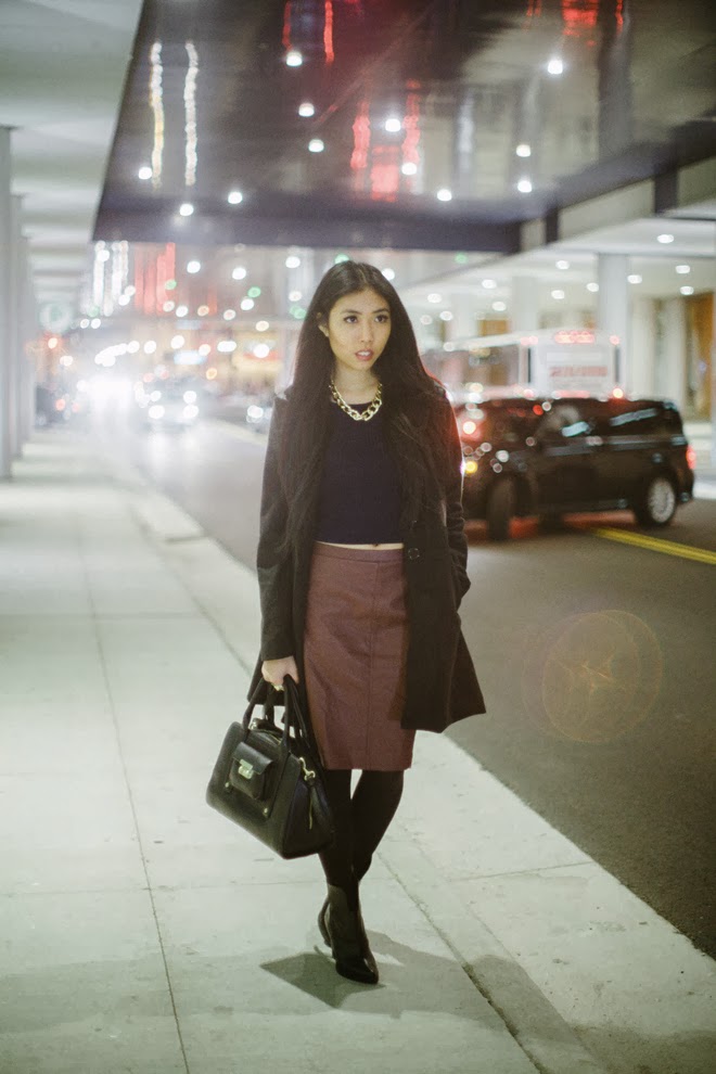 You can never go wrong with cropped sweaters! I wore one here and paired it with a leather pencil skirt. Also, I'm totally not over the combination of navy and black.